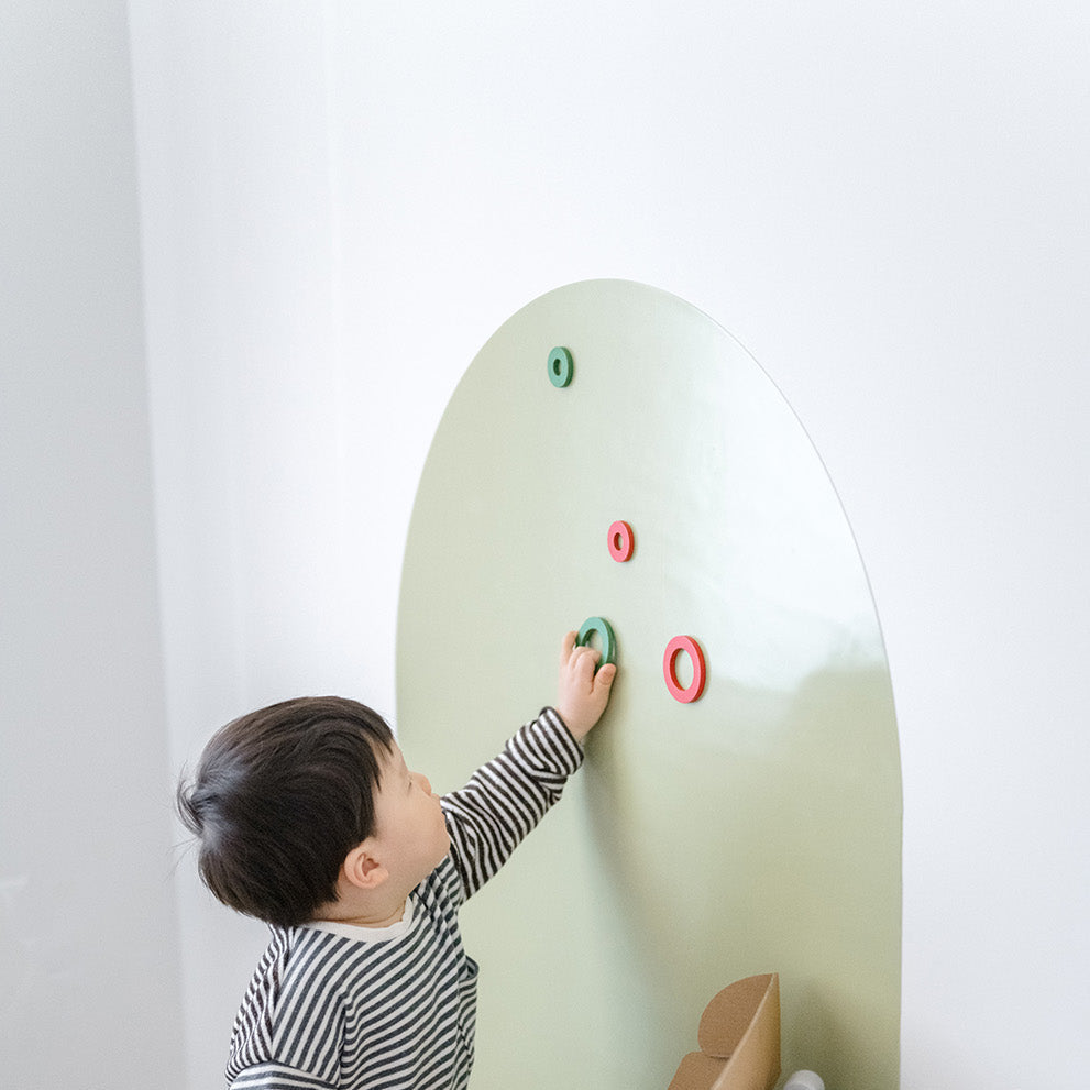 Start having fun with dry erase markers, liquid chalk pens, and magnets! Use a damp cloth or baby wipes to clean.